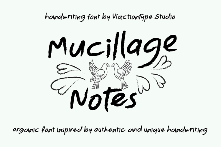 Designed with lively brush pressure and authentic stroke texture, Mucillage Notes delivers a realistic handcrafted feel. Each letterform shows visible brush detail and organic variation, making your typography, artistic, and premium rather than mechanical. The style feels free and fluid while maintaining refined structure—perfect for designs that aim to be both expressive and sophisticated.