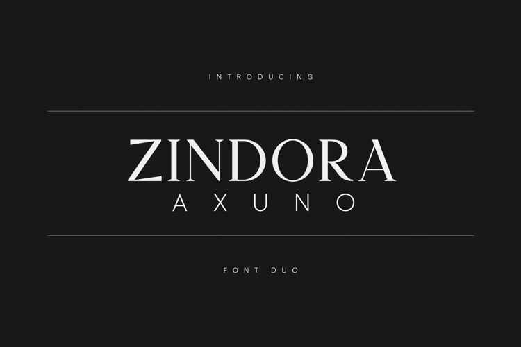 Zindora & Axuno is a luxurious serif and sans-serif duo crafted for modern brands seeking effortless elegance. Zindora brings classic editorial grace with its high contrast and delicate serifs, while Axuno complements it with clean geometric minimalism — together forming a perfect balance of sophistication and modernity.