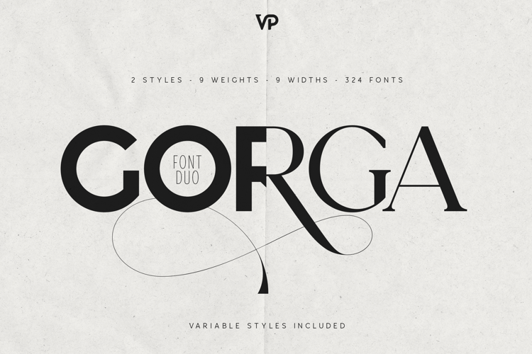 Gorga is a premium font duo designed to bring modern versatility and timeless elegance to any creative project. Featuring 2 complementary styles, 9 weights, 9 widths, and an impressive 324 total fonts, Gorga offers exceptional flexibility for branding, editorial design, packaging, and digital experiences.