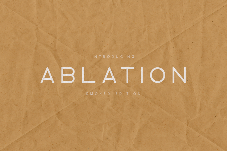 Ablation – Smoked Edition is a modern sans serif font with a subtle textured finish inspired by erosion, smoke, and organic wear. Featuring clean geometric letterforms softened by a distressed surface, this typeface balances precision with atmosphere, creating a calm yet expressive visual tone.
