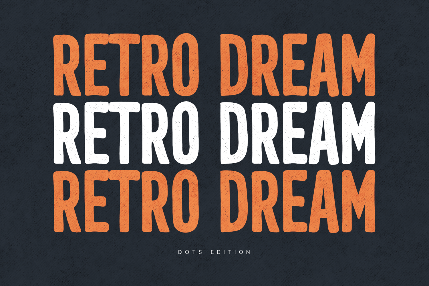 The textured details create an authentic worn print effect that adds personality and depth to any design. Retro Dream blends vintage aesthetics with modern usability, making it perfect for designers who want to create eye-catching typography with a handcrafted look.