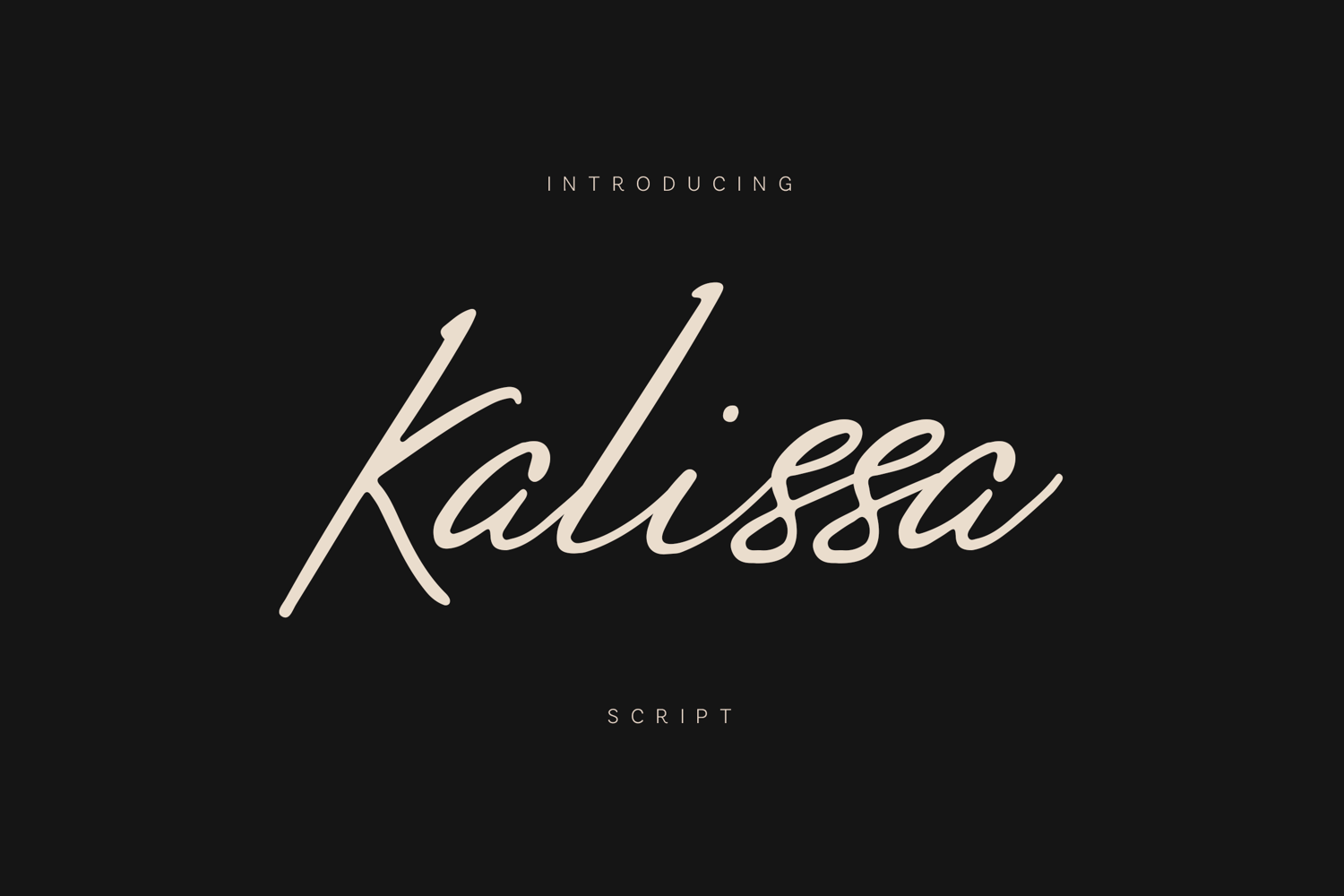 With its elegant handwritten character and natural signature style, Kalissa brings a graceful and modern script aesthetic to branding, editorial design, packaging, invitations, and visual identities.
