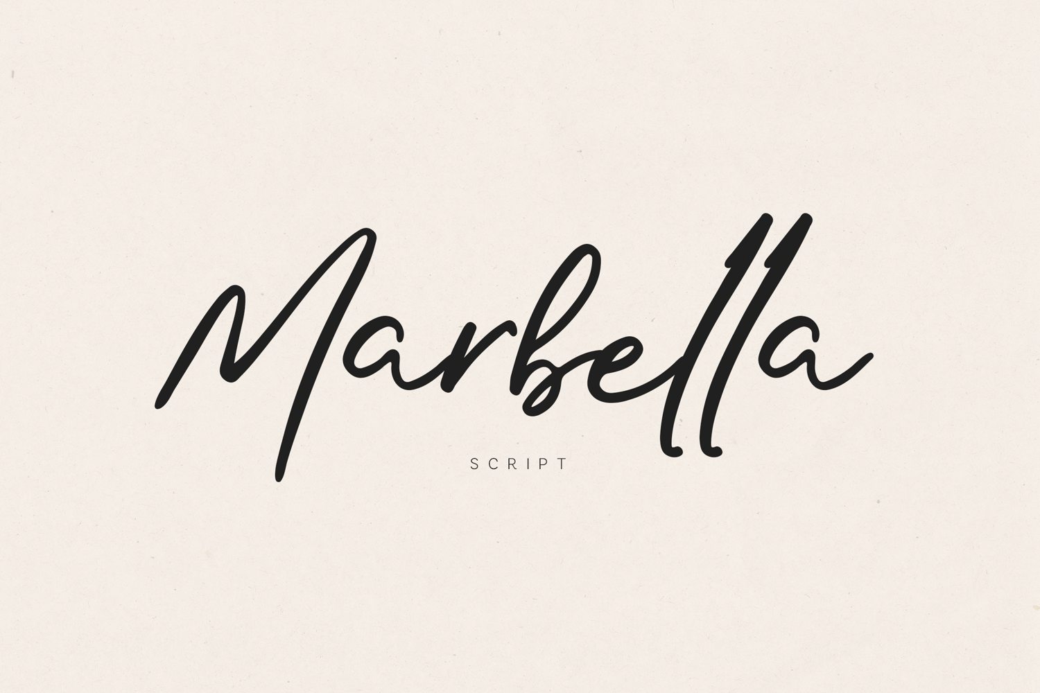 The script structure blends modern handwriting with refined calligraphic influence, producing letterforms that feel both natural and polished. Marbella delivers a relaxed yet confident style that works beautifully in expressive typography and contemporary design compositions.