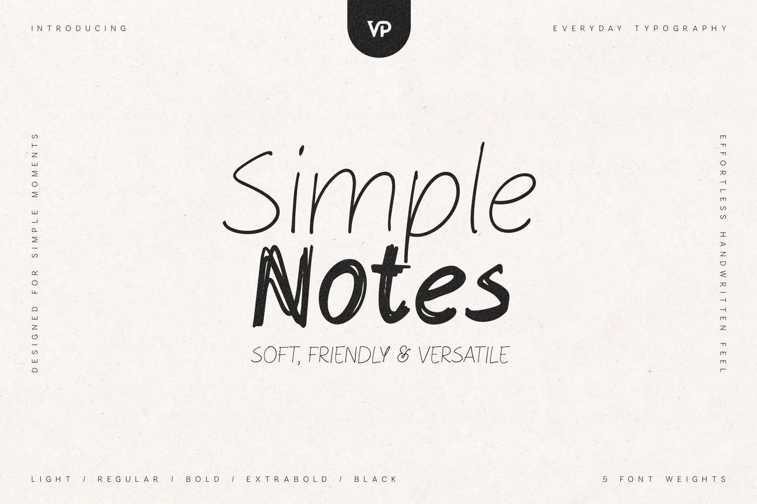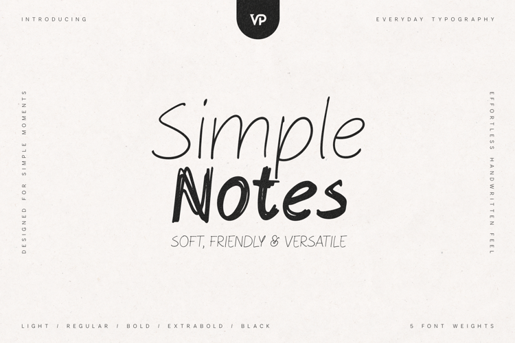 Simple Notes sits right between clean minimal sans and organic handwritten script, making it extremely flexible. The lighter weights feel elegant and airy, while the heavier weights add bold personality—perfect for mixing hierarchy in your designs.