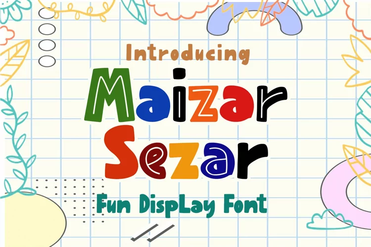 Maizar Sezar is a cute, playful and fun display font. This font is perfect for children themed designs, especially when combined with bright colors. Maizar Sezar is PUA encoded which means you can access all of the glyphs and swashes with ease!