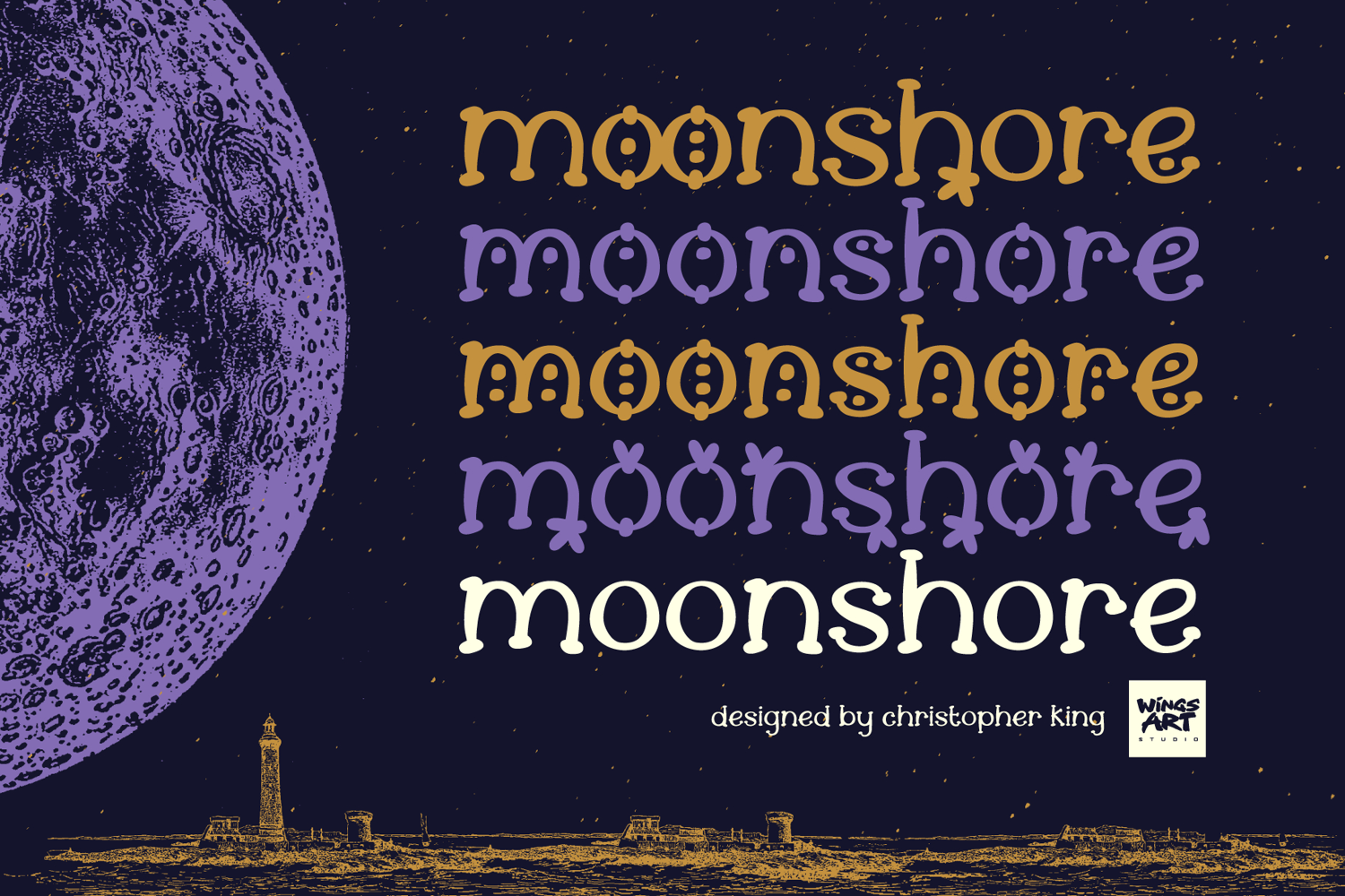 Inspired by classic English mysticism and folklore, Moonshore is a font deeply rooted in the ancient traditions of magic, nature, and children’s stories that warn of the dangers lurking within those far-off dark woods.