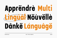 Midfold is a modern sans serif display font designed to make a strong impact. With its bold weight and clean lines, it's perfect for headlines, logos, branding, packaging, poster, advertising, sport, web design and various display purposes. Midfold features unique ligatures that add a touch of distinctiveness and modern to your typography. This versatile font family also supports multilingual characters, making it suitable for a wide range of projects. Midfold is the ideal choice for designers seeking a contemporary and professional font with character.