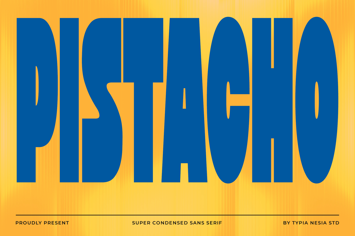 Pistacho is a bold retro super condensed sans serif font designed to create a striking vertical impact with its tall and narrow proportions. Blending modern structure with 80s, 90s, and Y2K retro influences, this typeface is perfect for bold headlines, logo design, café branding, coffee packaging, signage, music posters, promotional materials, and any design that needs a touch of modern, eye-catching style. Pistacho brings a fresh, energetic, and distinctive typographic voice to any visual project.
