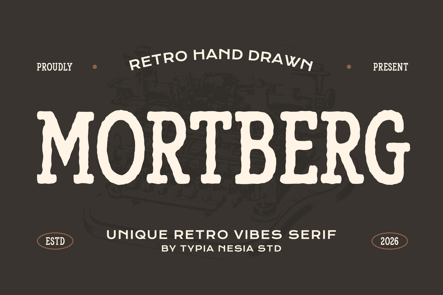 Mortberg is a rough vintage hand-drawn slab serif font crafted to deliver a bold, rugged, and authentic look. Featuring textured strokes and imperfect details, this typeface captures the essence of rustic and Western-inspired design. It is perfect for logo design, branding, packaging, posters, badges, outdoor or adventure-themed projects, and any project that needs a strong vintage character. Mortberg stands out with its rugged personality and classic Western vibe, giving your designs a distinctive edge that feels both raw and memorable.
