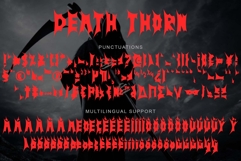"Death Thorn" is a spooky and unique display font. This font has thorns on each letter and is equipped with uppercase, lowercase, numerals, punctuations and multilingual support. Very suitable for posters, banners, branding, stickers, logos, prints, halloween, summer, spring, easter and others.