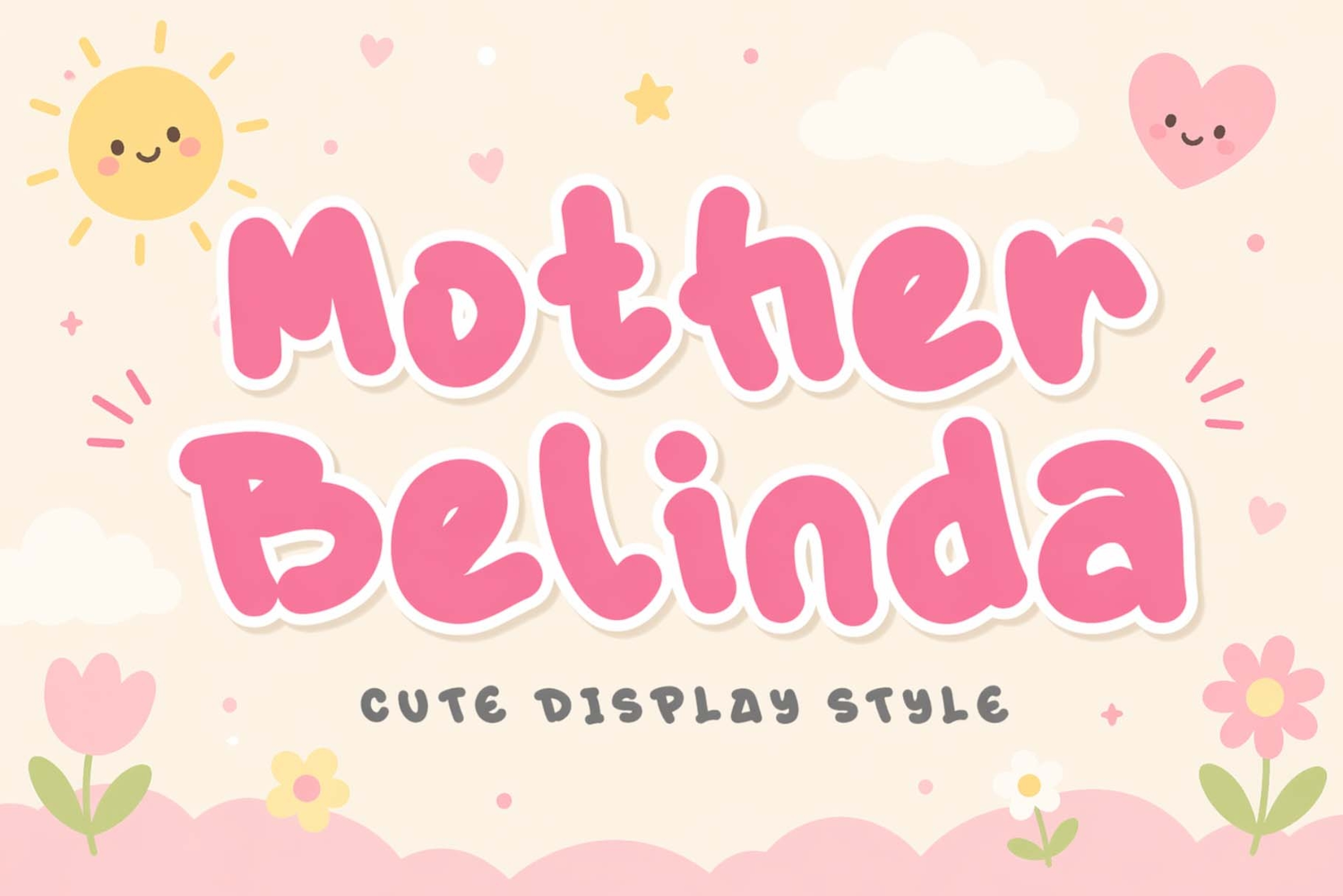 "Mother Melinda" is a beautiful and cute display font. It features uppercase and lowercase letters, numerals, punctuations, and multilingual support. It's perfect for Mother's Day, Teacher's Day, summer, spring, holidays, vacations, comics, magazines, cartoons, social media, business branding, back to school, birthdays, and more.